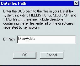 Enter the directories where your DataFlex application data files are located, or leave as a "." to automatically select your DOS DFPATH setting in your "AUTOEXEC.BAT" file. Click "OK" to continue. The Flex/ODBC installation process is now complete!